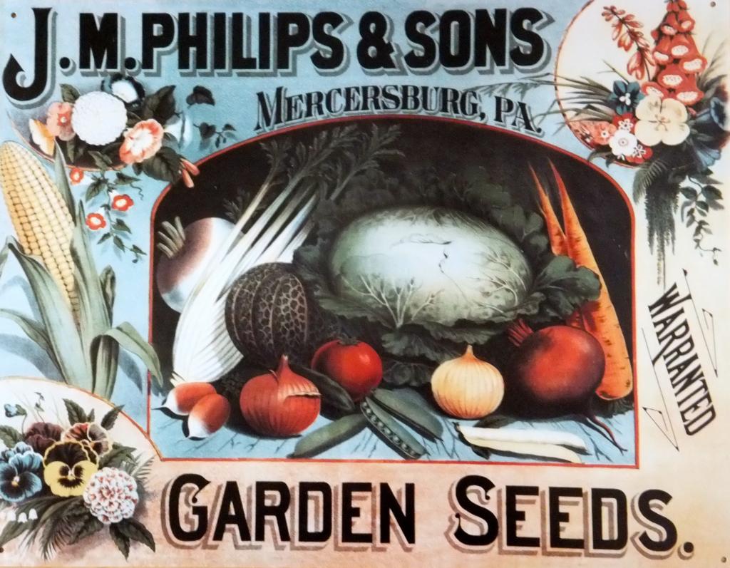 old fashioned metal garden seed ad sign - above the stove in our kitchen