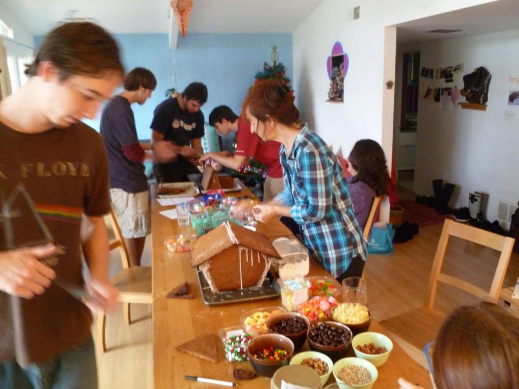 Cut gingerbread into shapes to make walls, roof halves and other parts of your house. Be creative here, but remember that intricate designs will be really hard to put together, and much harder to keep together.
