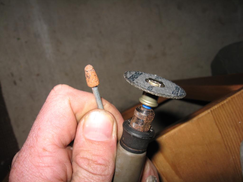 I used two different tips so that I could reach all the rivets while damaging the rails as little as possible. |