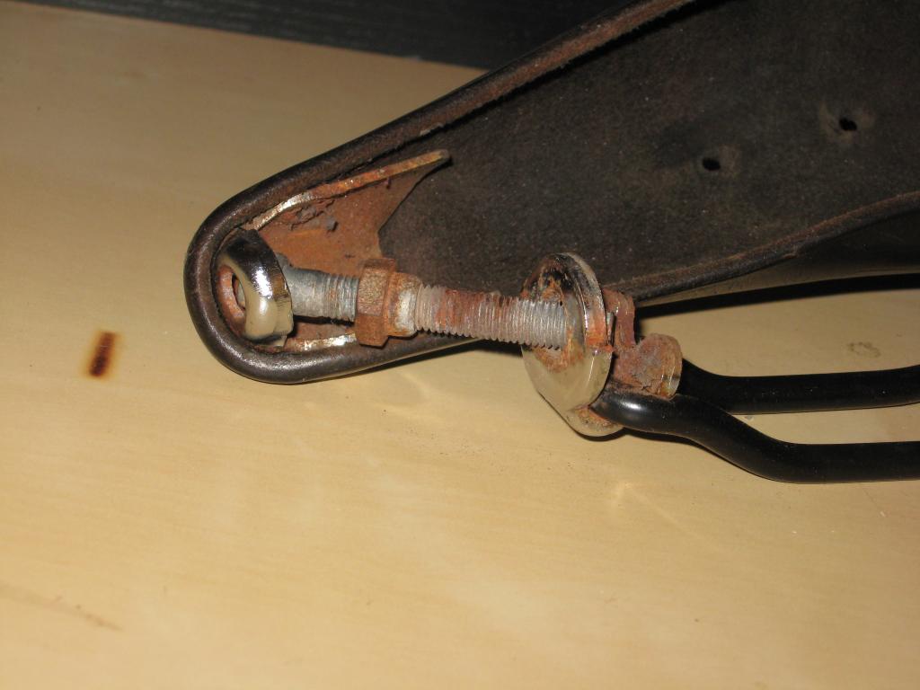 My chrome parts and the rail are slightly rusted because my bike lives outside and so I used a wire wheel to polish them up before reassembling the saddle.