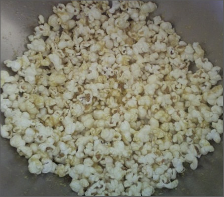 If you do not have a popcorn maker put one teaspoon of the olive oil in a heavy bottomed pot along with the popcorn kernels. Cover the pot and allow to sit until the kernels start to pop. Remove from heat and allow to cool for a few minutes.